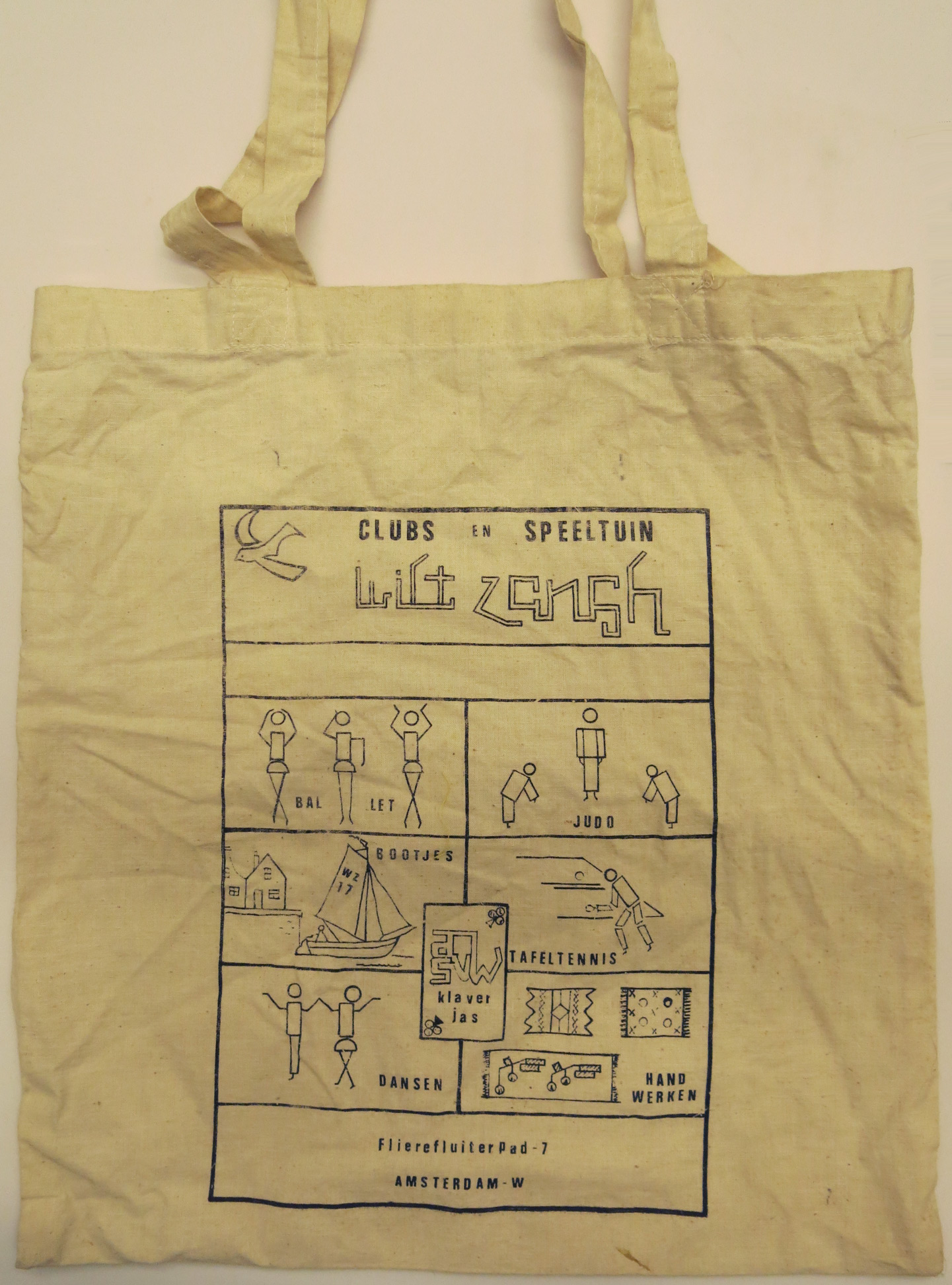 Op de grond stonden dozen met archieven en fotoalbums te wachten op het Stadsarchief. In de albums verkleurde foto’s uit de jaren zeventig van een clubhuis vol buurtbewoners met aan de muur een vlag waarop het embleem van de vereniging is geborduurd. In een doos ligt keurig opgevouwen een stapel vlaggen. Op de bar zie ik een foto hangen van Uilke Jans Klaren die omstreeks 1900 ijverde voor de oprichting van speeltuinen. In het kantoortje van het bestuur hangt een mooi tegeltableau uit 1942, ter herinnering aan het 25-jarig bestaan van het Amsterdams Speeltuin Verbond. Op het tableau, gemaakt door Goedewaagen Gouda, staan spelende kinderen, twee sportende volwassenen en de namen van alle Amsterdamse speeltuinverenigingen die indertijd deel uitmaakten van het ASV.