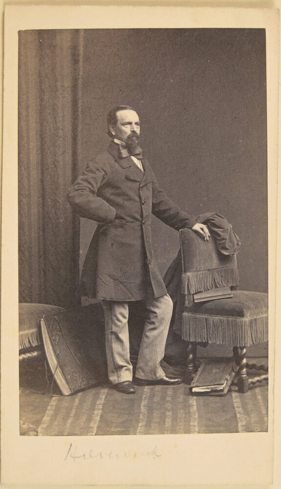 Eduard Alexander Hilverdink (1846-1891) vervaardigde schilderijen, aquarellen en tekeningen. Zijn lievelingsonderwerpen waren stadsgezichten en landschappen. Hierin legde hij, door oud en nieuw subtiel tegen elkaar af te zetten, de snel veranderende wereld om hem heen vast. Hilverdink maakte studiereizen door Nederland en Duitsland en nam regelmatig deel aan exposities van werk van eigentijdse kunstenaars in Amsterdam en Den Haag. ( Bert Vreeken)