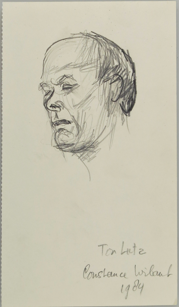 Ton Lutz (1919-2009) was een acteur en regisseur in het beroepstoneel, evenals een docent aan de Amsterdamse Toneelschool. De Delftse Lutz debuteerde in 1941 bij de Vereenigde Haagsche Spelers en nam tijdens de oorlog deel aan clandestiene voorstellingen. Na de bevrijding kon zijn toneelcarrière pas echt van de grond komen. In 1947 mocht hij zijn eerste onderscheiding al in ontvangst nemen, het jaar daarna regisseerde hij zijn eigen stuk. Hij zat in de directie van verschillende toneelgezelschappen, waaronder de Nederlandse Comedie. Deze schets is een voorstudie voor een beeld van Lutz, gemaakt door beeldhouwster Constance Wibaut, een kleindochter van de beroemde SDAP-politicus Floor Wibaut. ( Sarah Remmerts de Vries)