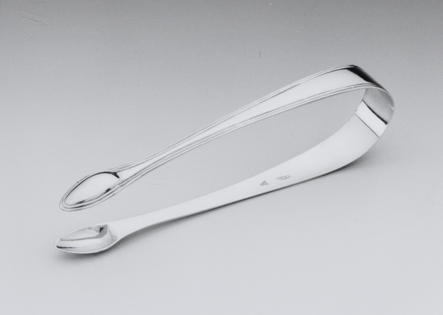 Suikertang met puntig ovale bakjes, rand stelen en greep met dubbele filetrand.