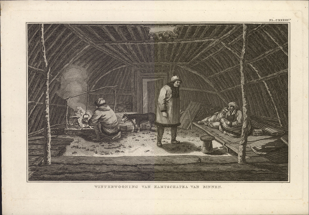 titel midden onder de afbeelding: Winterwooning van Kamschatka van binnen
