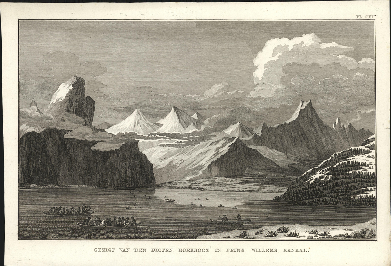 titel midden onder de afbeelding: Gezigt van den digten Hoekbogt in Prins Willems Kanaal