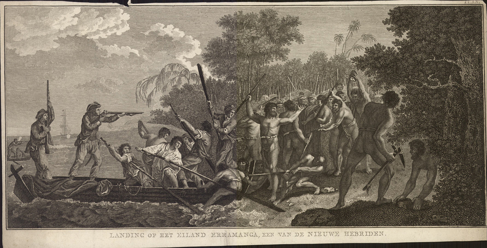 Gevecht tijdens de landing op het eiland Erramanga met de eilandbewoners
