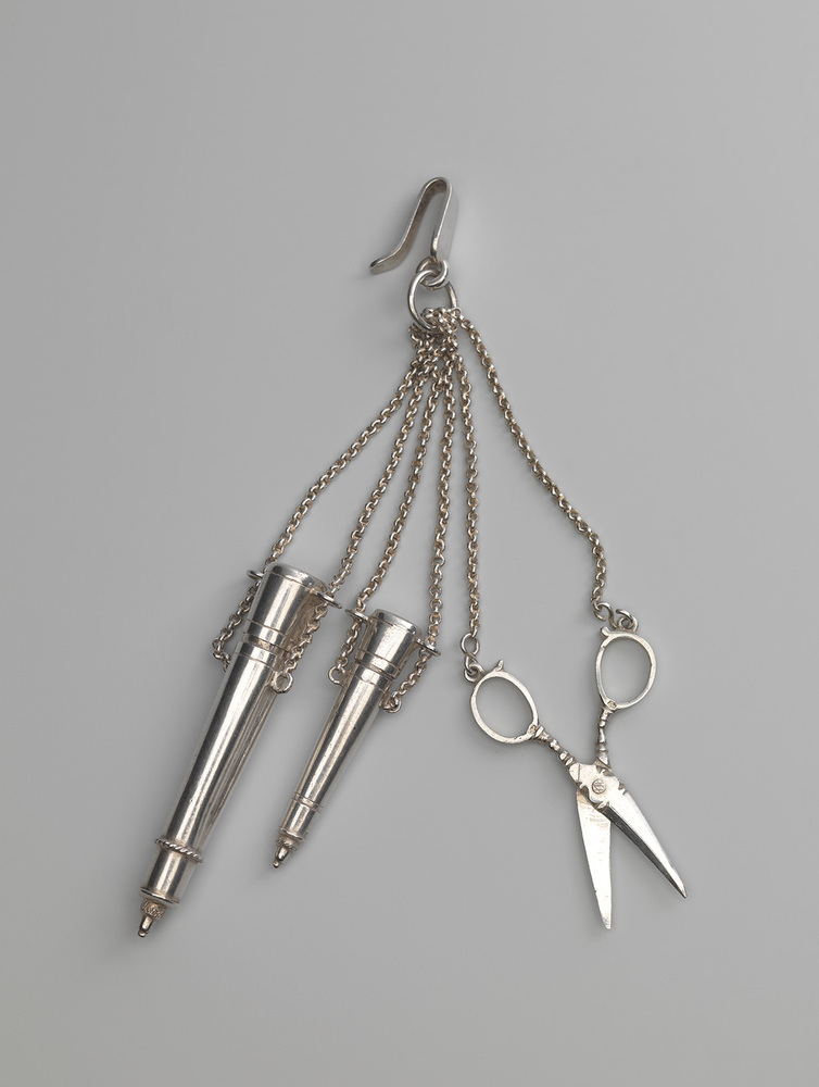 Rijke vrouwen hadden vroeger een zilveren tuigje waaraan kettingen met diverse gebruiksvoorwerpen hingen. In een tijd dat er nog