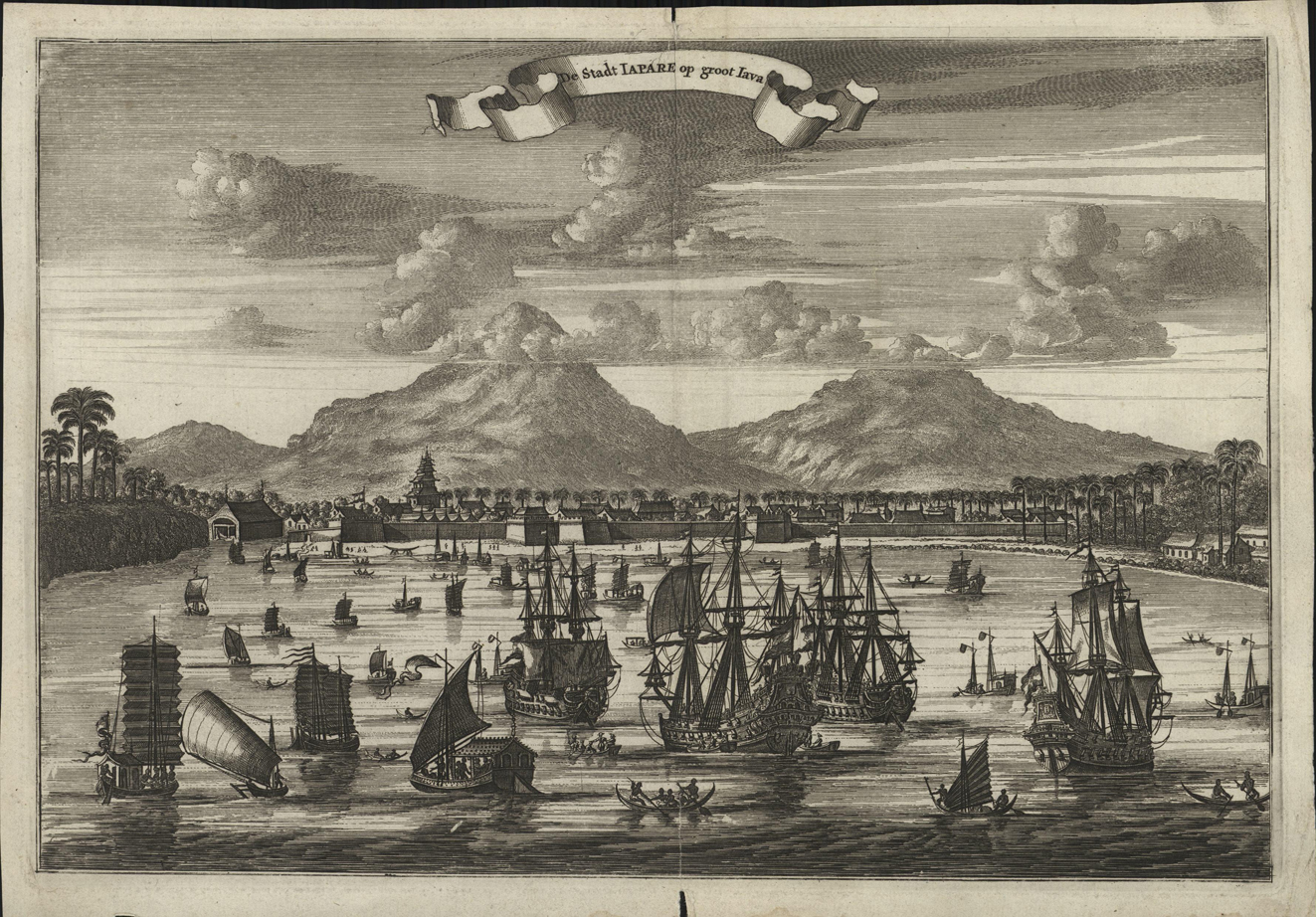 - opschrift midden boven in afbeelding: De Stadt IAPARE op groot Iava