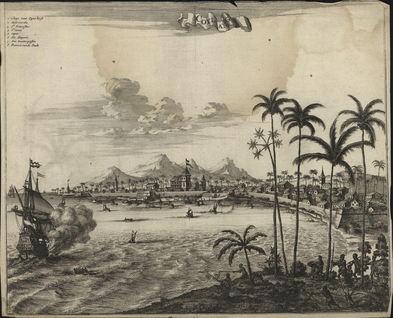 Gezicht op de stad Coylang, het huidige Kollam in India.