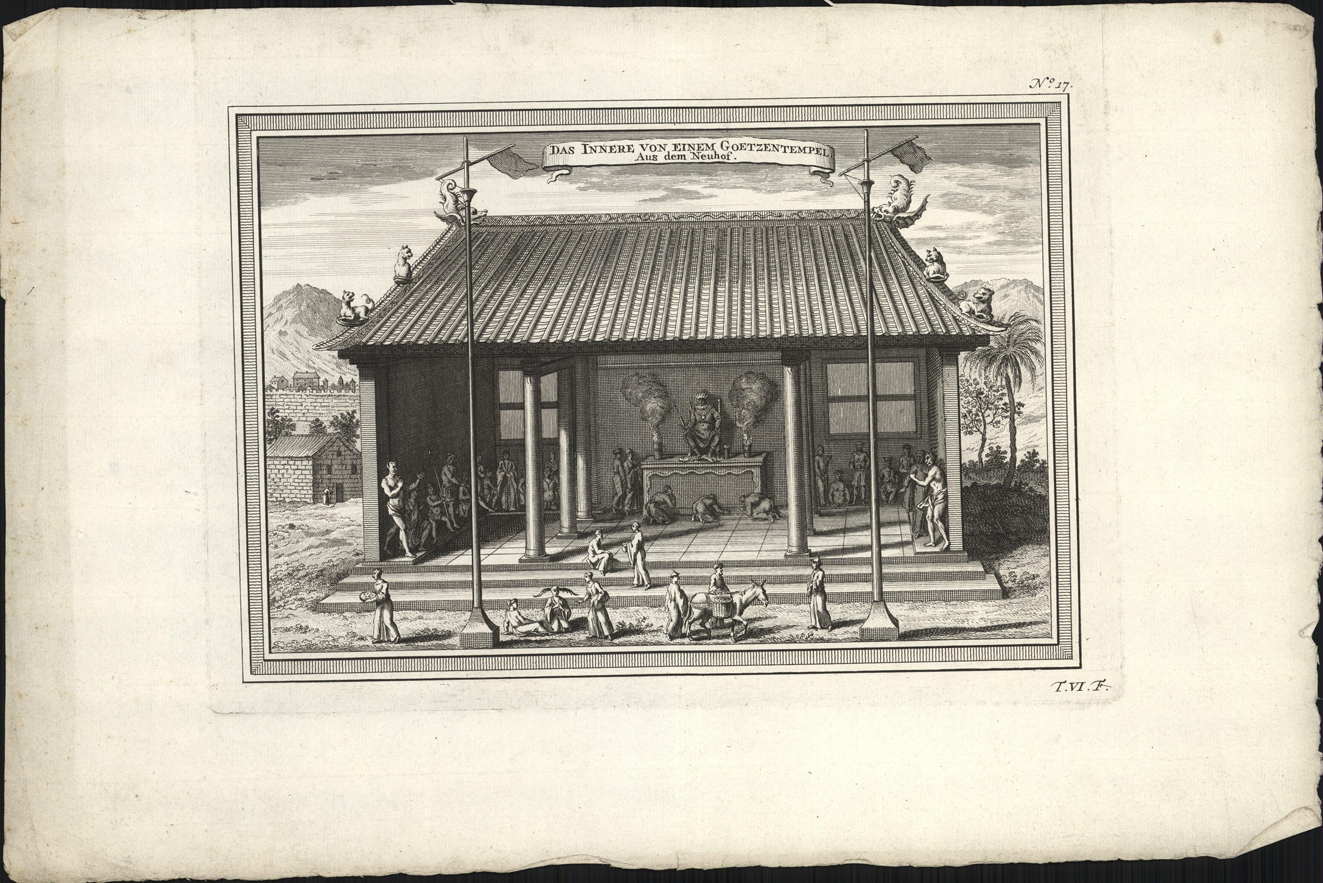 - opschrift midden boven in afbeelding: DAS INNERE VON EINEM GOETZENTEMPEL/ Aus dem Neuhof.