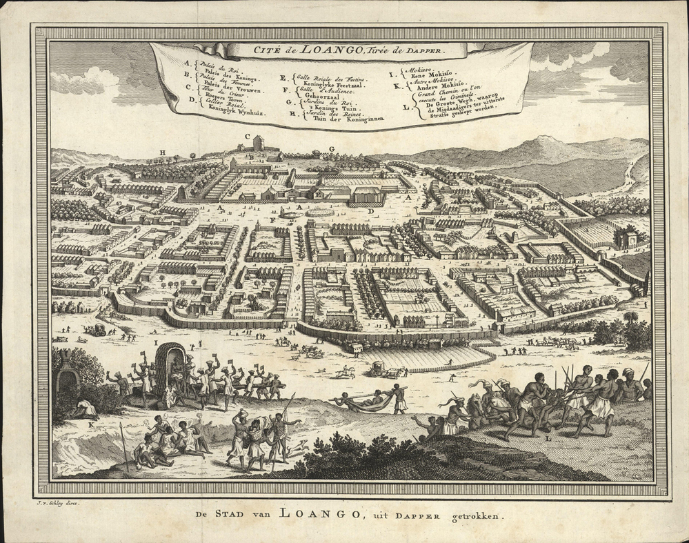 - opschrift midden boven in afbeelding: CITÉ de LOANGO, Tirée de DAPPER.