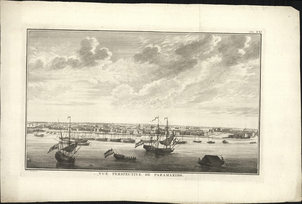 - titel midden onder de afbeelding: VUË PERSPECTIVE DE PARAMARIBO