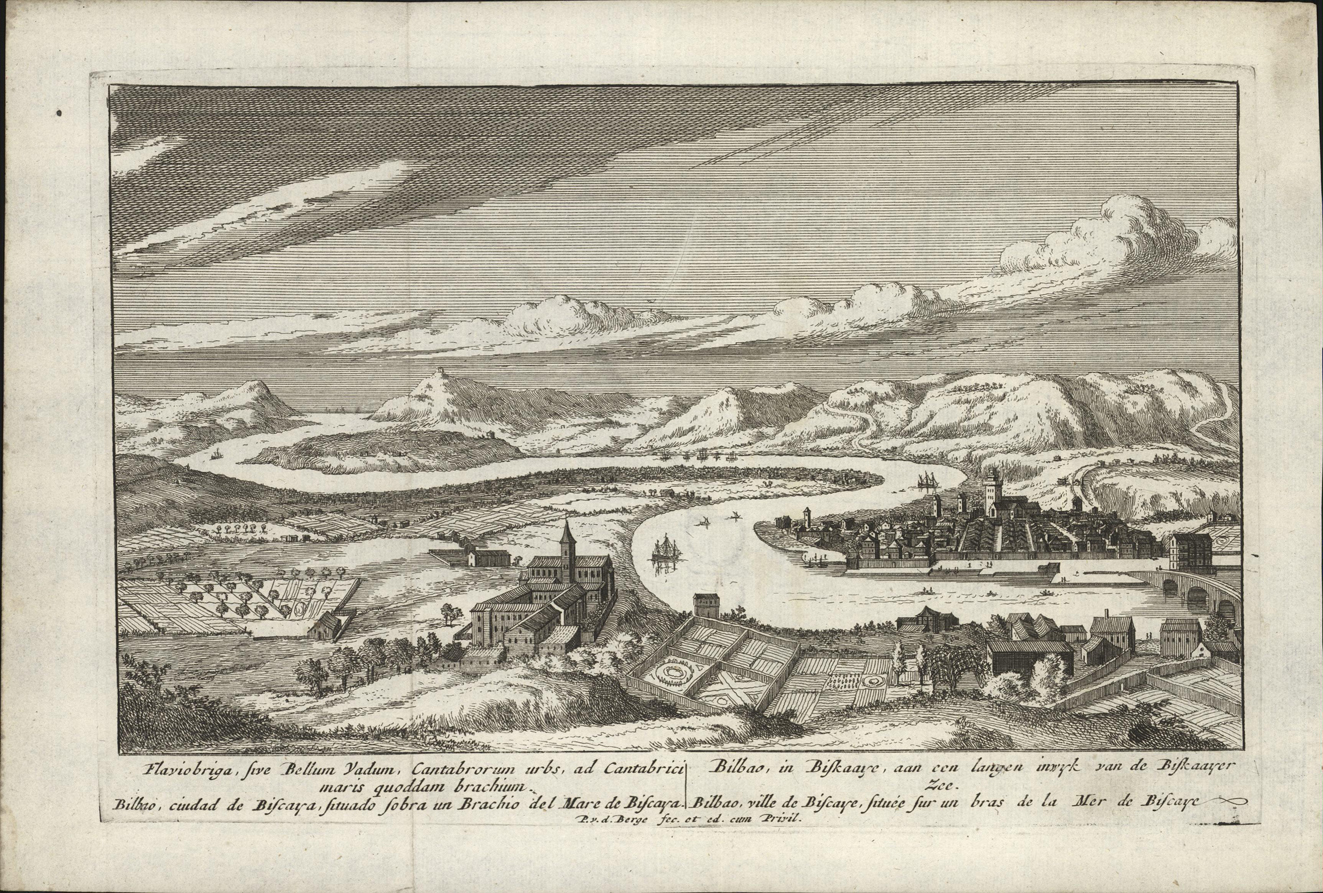 opschrift rechts onder afbeelding: Bilbao, in Biskaayem aan een langen inwyk van de Biskaayer/ Zee./