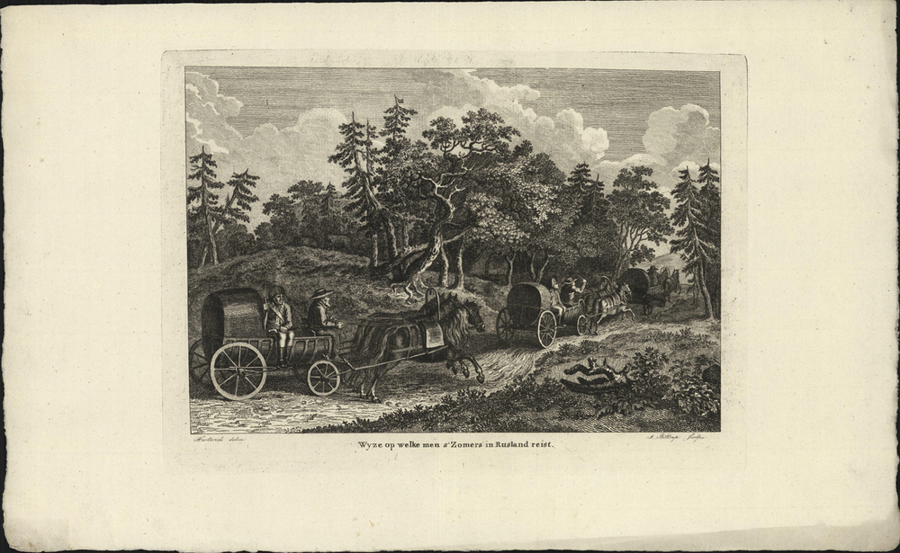 - opschrift midden onder de afbeelding: Wyze op welke men s'Zomers in Rusland reist.