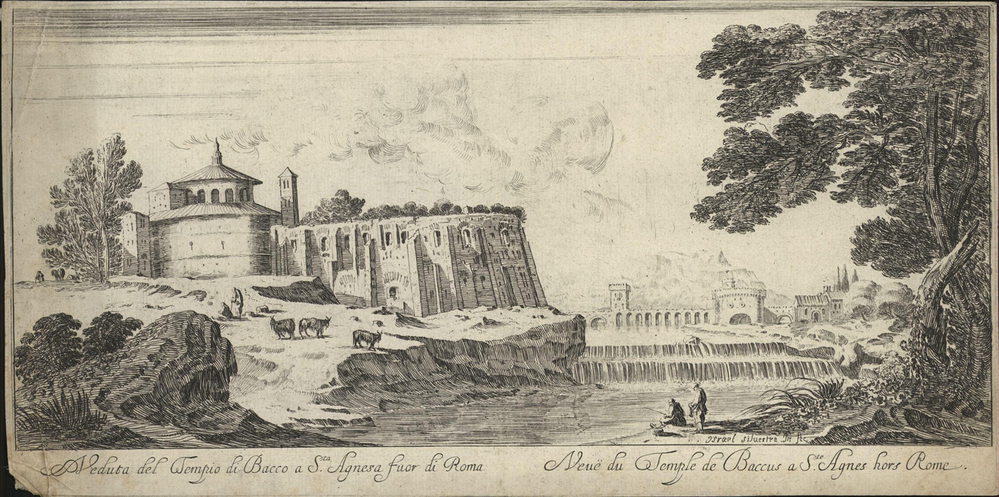 opschrift rechts onder afbeelding: Veuë du Temple de Baccus a Ste Agnès hors Rome