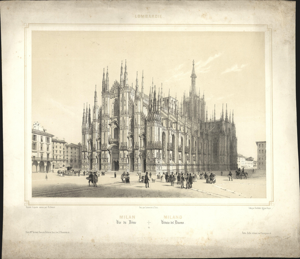 - opschrift marge onder afbeelding: Dessiné d'apares nature par Ph. Benoist. / Imp Par Lemercier à Paris / Lith. par Bachelier. fig. par Bayot