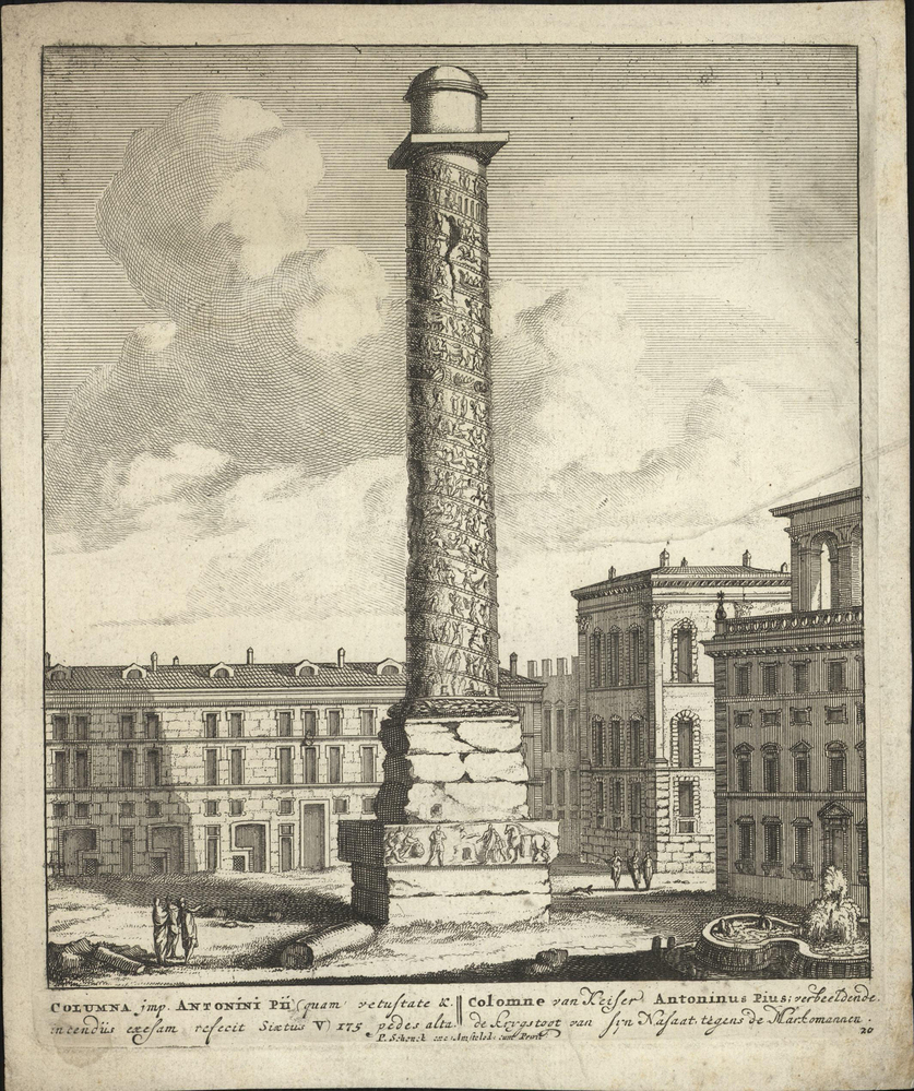 - Columna imp. Antonini Pii, quam vestitate & in cendüs exesam refecit Sixtus V. 175 pedus alta, 1600 - 1699