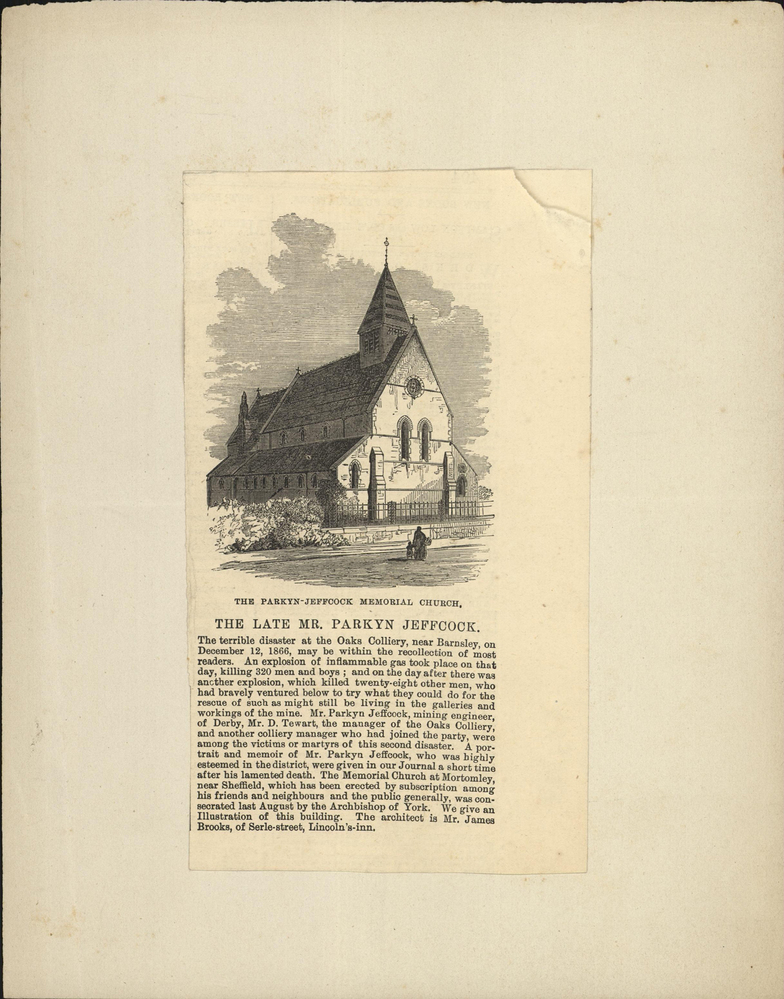 - opschrift midden onder afbeelding: THE PARKYN-JEFFCOCK MEMORIAL CHURCH,/ THE LATE MR. PARKYN JEFFCOCK.