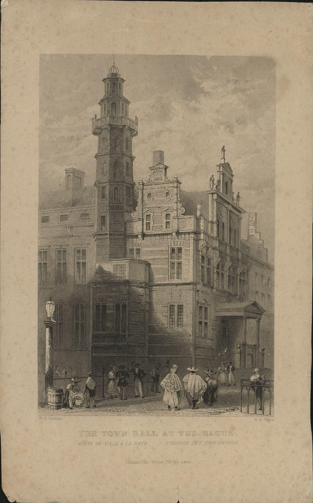 - opschrift marge: Hôtel de la Ville à La Haye / Stadhuis in 's Gravenhage / London: Geo. Virtue, 26 by Lanc.