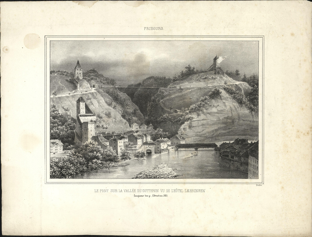 - Le Pont sur la vallée du Gotteron vu de l'hôtel Zaehringen, 1830 - 1870