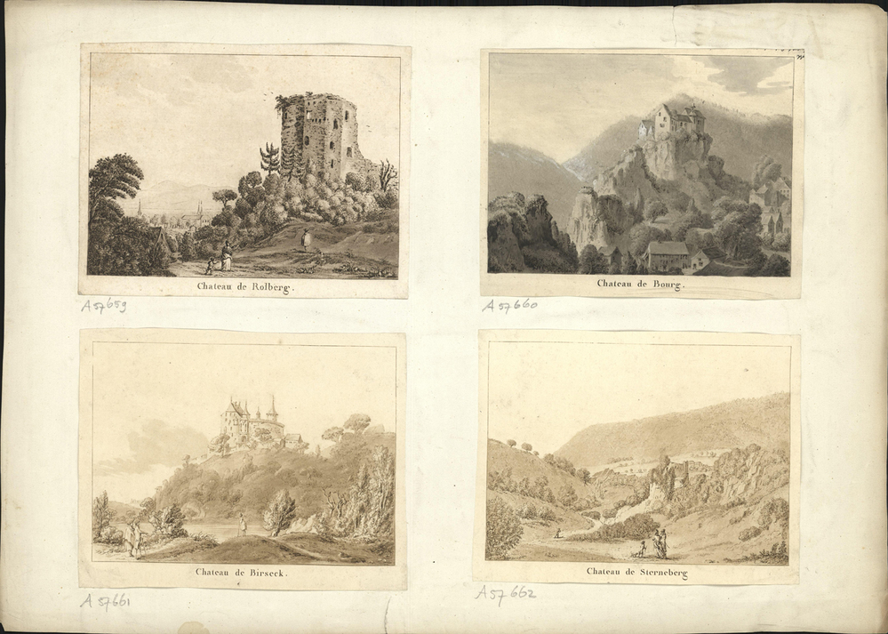 - opschrift marge: Chateau de Rolberg / Chateau de Bourg / Chateau de Birseck / Chateau de Sterneberg