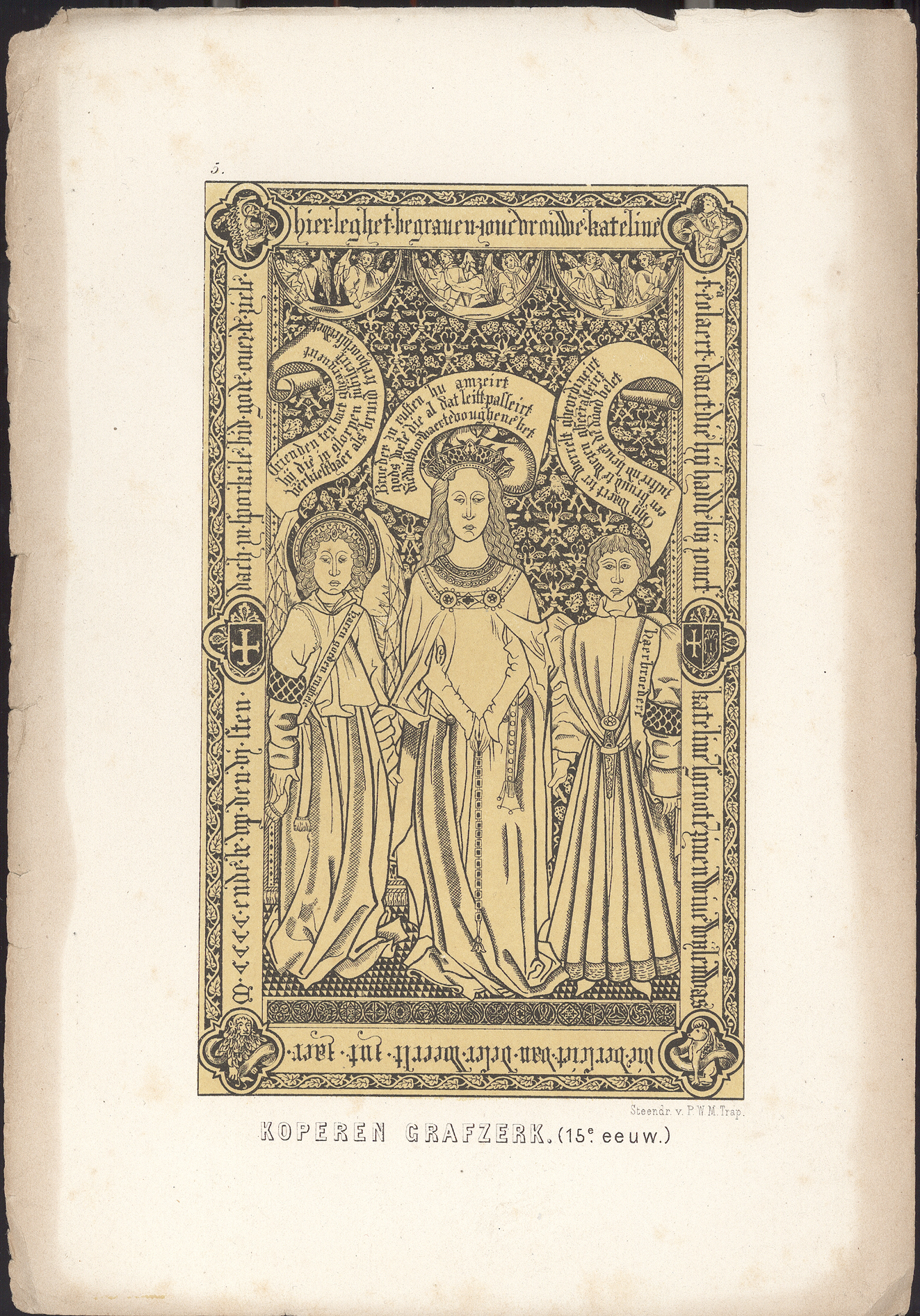 - opschrift midden onder afbeelding: KOPEREN GRAFZERK. (15e. eeuw.)