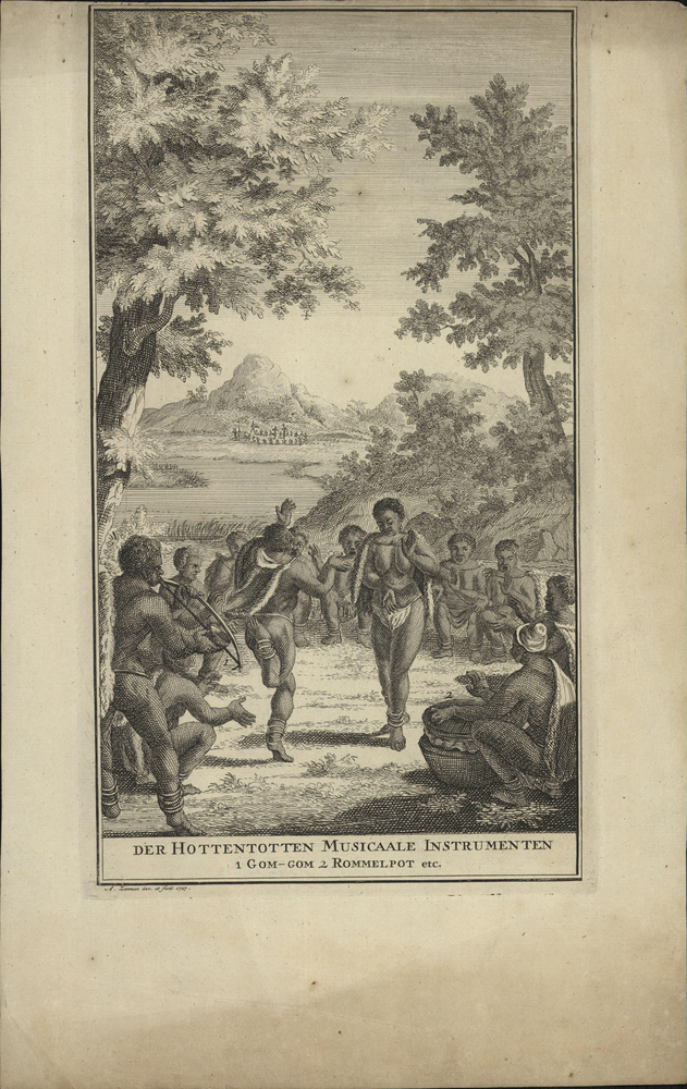 - titel onder de afbeelding: Der Hottentotten Musicaale Instrumenten