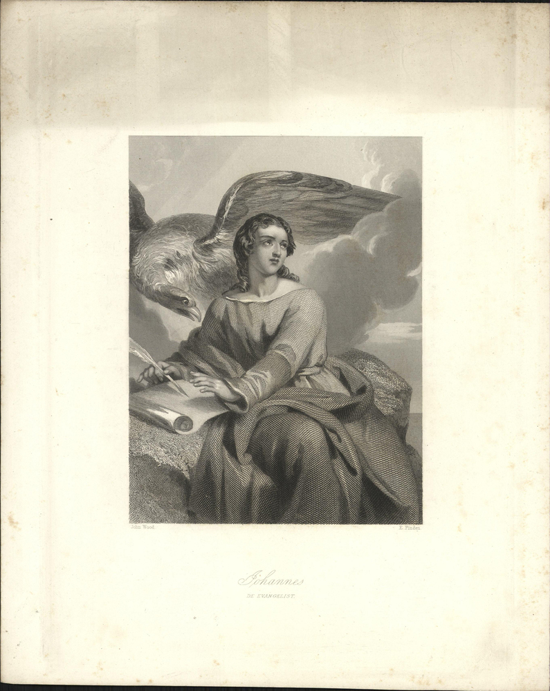 De evangelist Johannes schrijvend op het eiland Patmos met achter zich een vliegende adelaar- Trefwoorden