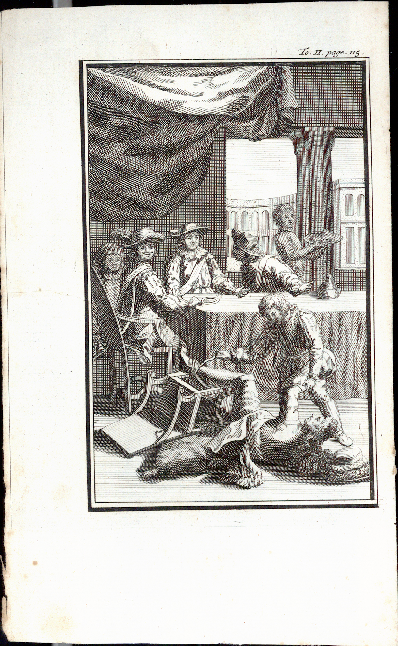 In een kamer aan een tafel, heeft een schelm stiekem iemand met zijn enkel aan een stoelpoot vastgebonden. De man valt als hij opstaat op de grond, en zijn vrienden moeten lachen- Trefwoorden