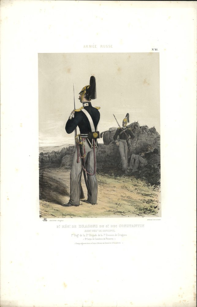 opschrift midden onder de afbeelding: 3e RÉGt. de DRAGONS du Gd. Duc CONSTANTIN