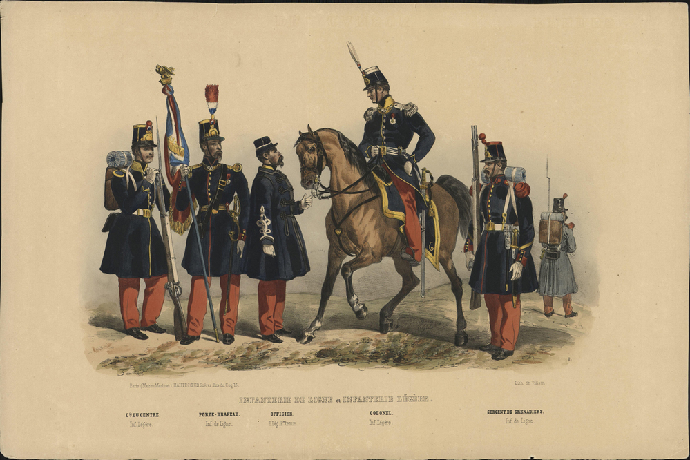 opschrift midden onder afbeelding: INFANTERIE DE LIGNE et INFANTERIE LÉGÈRE.