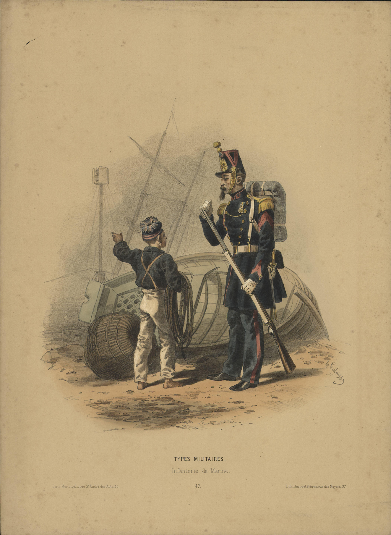 - opschrift midden onder afbeelding: TYPES MILITAIRES./ Infanterie de Marine./ 47.