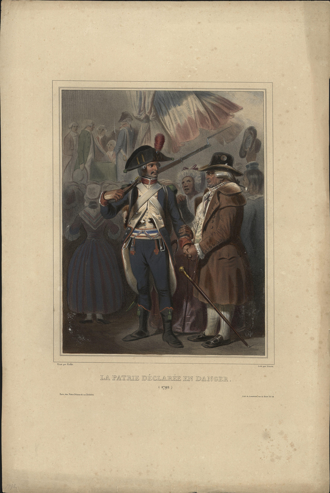 opschrift midden onder afbeelding: LA PATRIE DÉCLARÉE EN DANGER./ (1792)