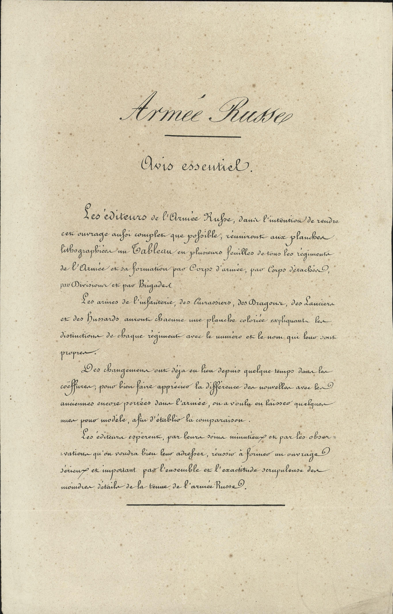 - titel midden bovenaan de afbeelding: Armée Russe Avis essentiel