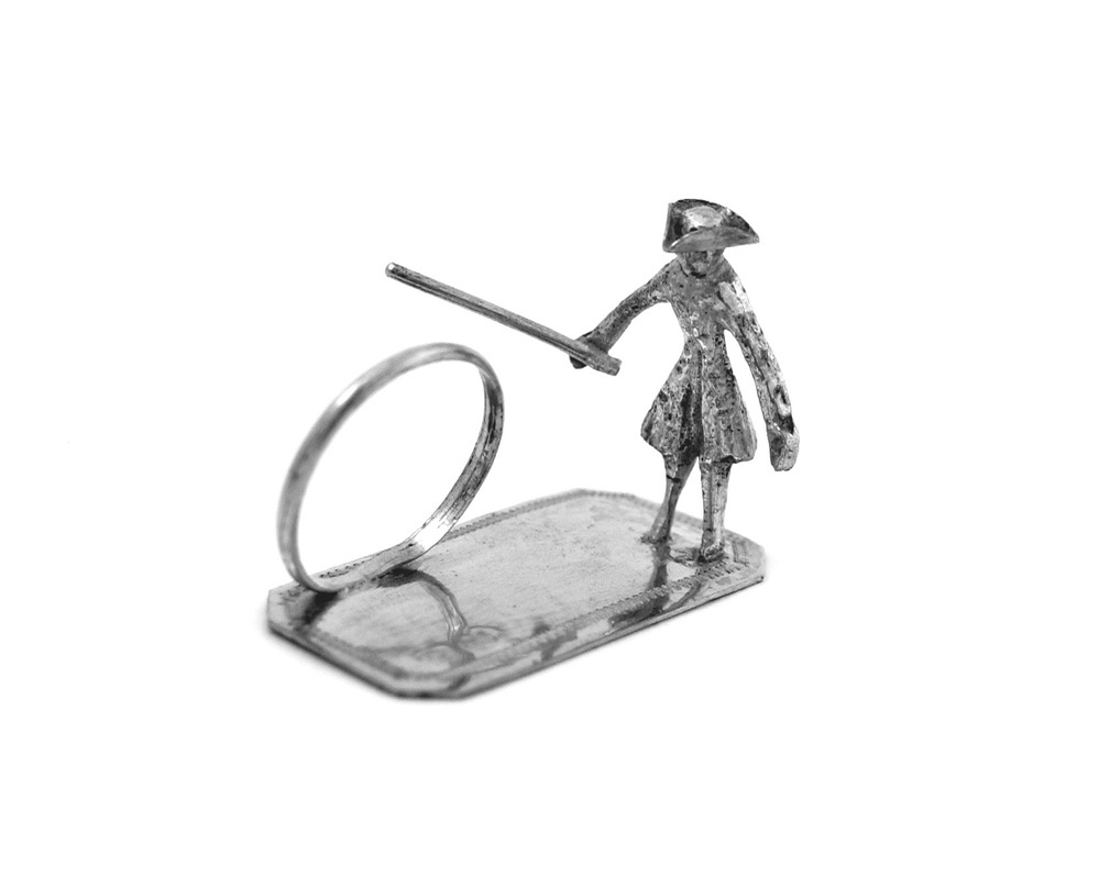 Man in 18de eeuwse kledij met stok en hoepel- Trefwoorden
