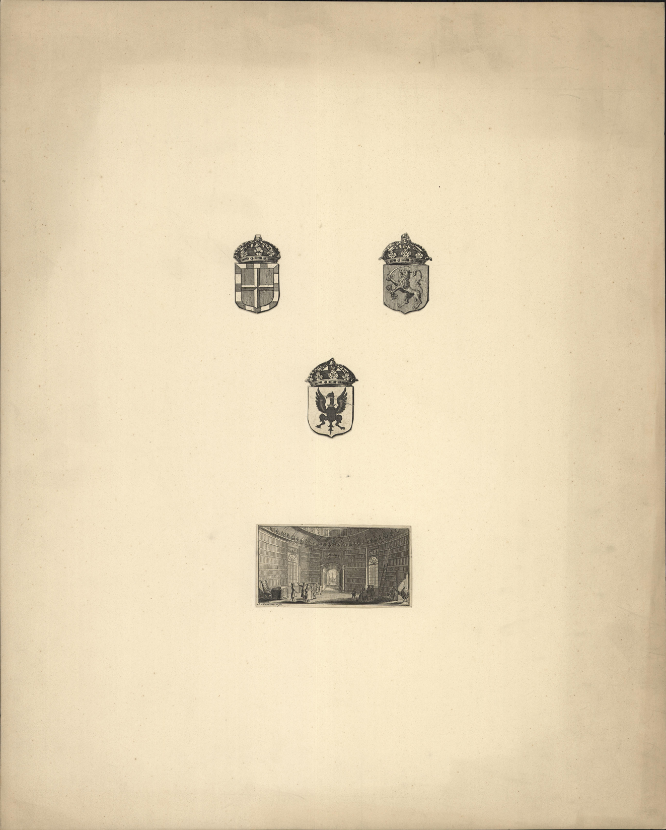 - Drie heraldische wapens en een bibliotheek, 1800 - 1899