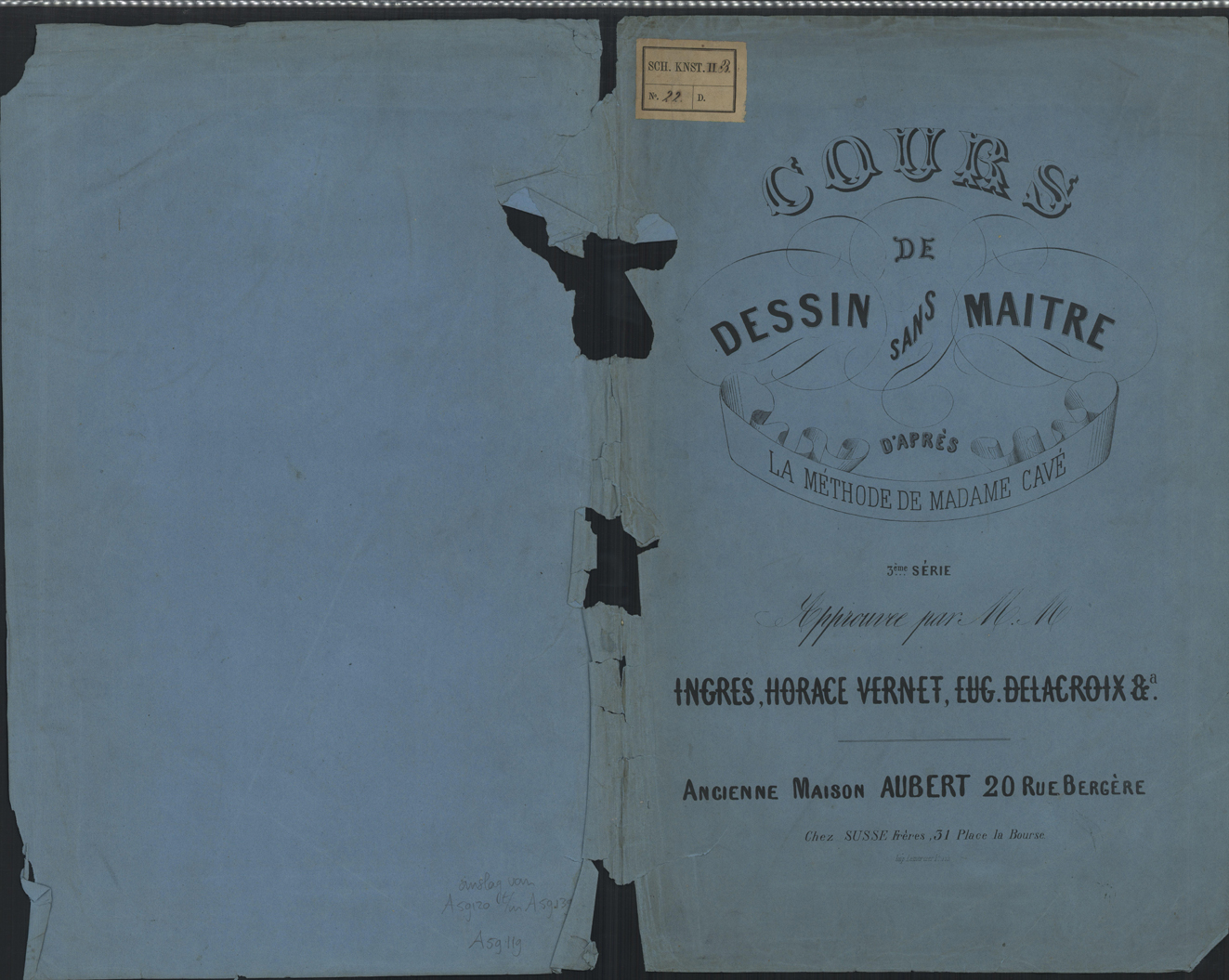 titel bovenste helft van de afbeelding: Cours de dessin sans maitre d'après la méthode de madame Cavé