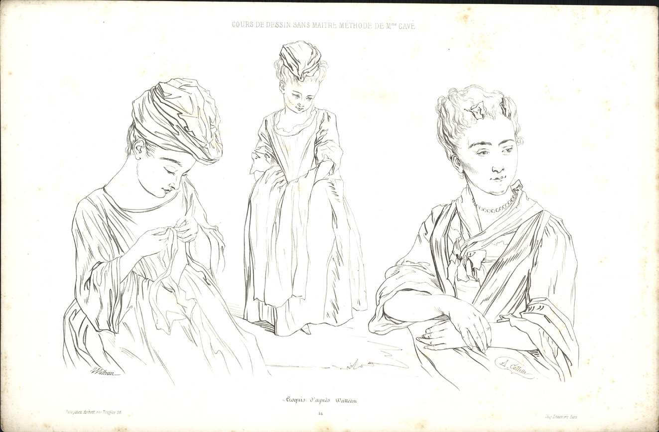 titel midden boven in de afbeelding: Cours de dessin sans maitre, méthode de Mme Cavé