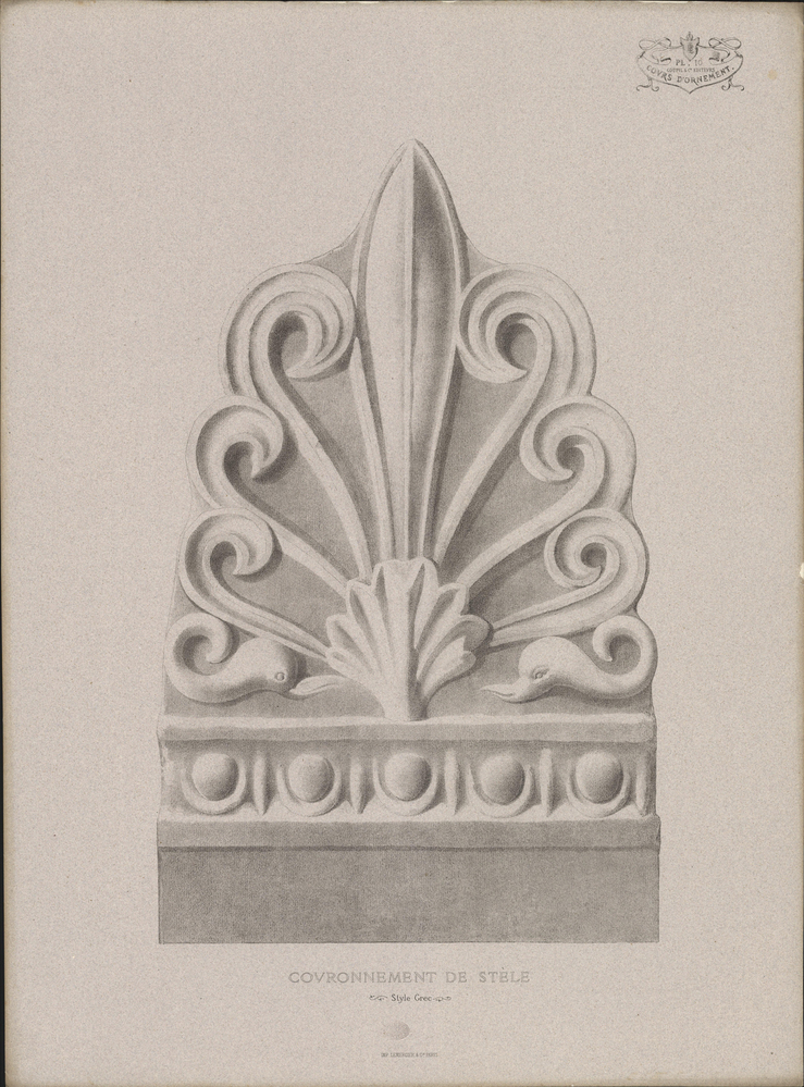- opschrift midden onder afbeelding: COURONNEMENT DE STÈLE/ Style Grec