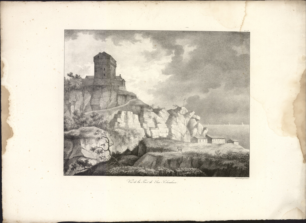 - titel midden onder de afbeelding: Vue de la Tour de San-Columbano.