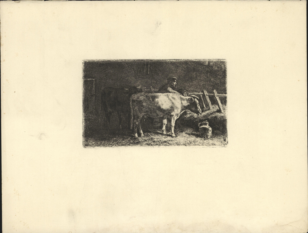 - opschrift verso: Jan Vrolijk, Een koeienstal