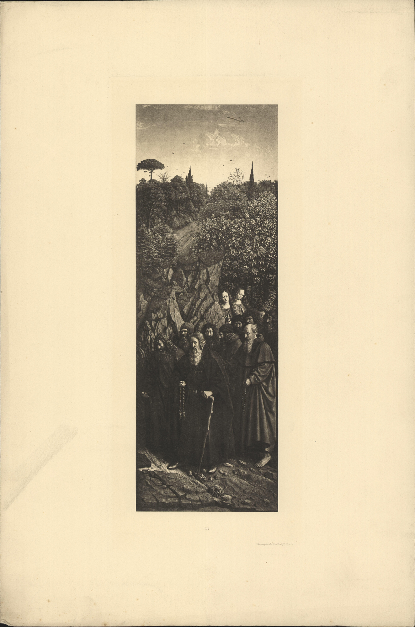 Een rechterpaneel van het Lam Gods van Van Eyck.- Trefwoorden
