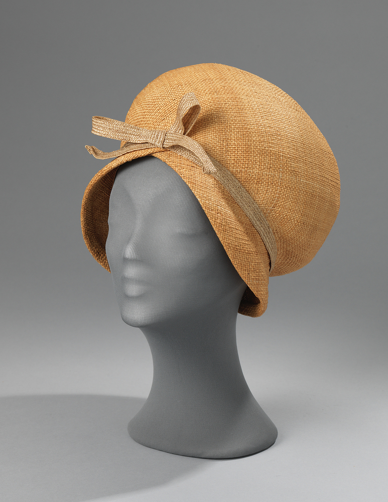 Deze opvallende dameshoed van stro is gemaakt door de bekende hoedenmaker Harry Scheltens (1927-2006). Scheltens staat bekend als de hoedenontwerper van koningin Beatrix. Dertig jaar lang maakte Scheltens elk jaar zo'n dertig hoeden voor de toenmalige koningin, die meestal tijdloos, groot en rond van vorm waren. Deze dameshoed uit 1960 is een excentrieker model in de vorm van een paddenstoel. Om de onderrand is een bandje met een strik geplaatst van hetzelfde materiaal als de hoed. Aan de binnenkant bevindt zich een stoffen band, waarop het merklabel van Harry Scheltens is aangebracht. ( Sarah Remmerts de Vries)
