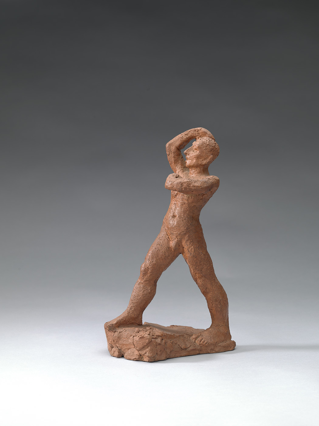 John Rädecker (1885-1956) was één van de belangrijkste beeldhouwers van zijn tijd. Samen met architect J.J.P. Oud (1890-1963) kreeg Rädecker in 1948 de opdracht een nationaal monument op de Dam te ontwerpen, ter nagedachtenis aan alle Nederlanders die tijdens de Tweede Wereldoorlog door oorlogshandelingen zijn omgekomen. Oud was verantwoordelijk voor het ontwerp van de 22 meter hoge pyloon met concentrische terrassen, Rädecker vervaardigde de figuren. De figuren bestaan onder meer uit vier geketende mannen (verbeeldingen van het lijden tijdens de bezetting), aan weerzijden daarvan twee figuren die het verzet symboliseren en boven hen een zwevende vrouwenfiguur met kind op de arm, als symbool van de overwinning. Dit beeldje van een staande man is waarschijnlijk een voorstudie voor de jonge verzetsfiguur met opgeheven armen aan de rechterzijde van het monument, symbool voor het arbeidersverzet. ( Sarah Remmerts de Vries)