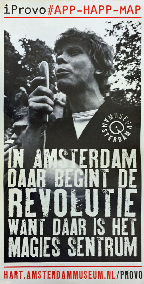 Ter gelegenheid van 50 jaar Provo heeft het Amsterdam Museum in het voorjaar van 2015 een Provo-tentoonstelling gemaakt, niet in het museum, maar in de stad. Posters in de stijl van Provo, ontworpen door Floor Wesseling, markeerden de plekken van ‘Magies Sentrum’ Amsterdam. Sommigen hingen achter het raam, anderen op witte fietsen. Het waren 31 verschillende posters, die allen een ander verhaal vertellen over de verschillende locaties waar Provo actief was. ( Annemarie de Wildt)