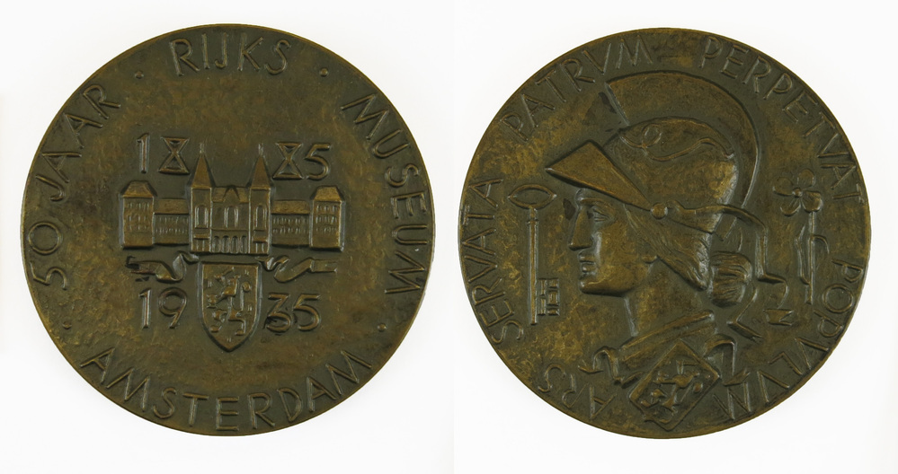 keerzijde: in een omschrift het Rijksmuseum waarboven een jaartal en onder een jaartal met het wapenschild van Nederland met een lint.