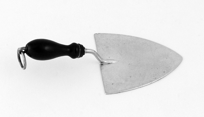 Troffel met gelijkzijdig blad en ebbenhouten greep met ring- Trefwoorden