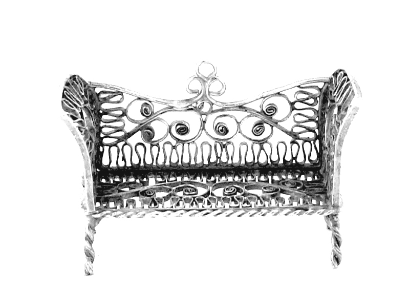 Bank in filigrain met getorste poten, onderdeel van miniatuur ameublement- Trefwoorden