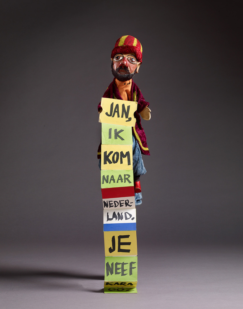 De poppenkast op de Dam speelt nu ruim honderddertig jaar het poppenspel ‘Jan Klaassen en Katrijn’. Poppentheater Pantijn gaf de klassieke scènes in de jaren tachtig een nieuwe inhoud. Ook werd een nieuw karakter toegevoegd die beter paste bij de maatschappelijke actualiteit. Deze nieuwe pop heette Karagöz (zwartoog), de Turkse neef van Jan Klaassen. Hij kwam over uit Istanbul om de rol van Jan Klaassen over te nemen. Karagöz ontpopt zich als een even eigenwijze, mediterrane kloon van zijn neef. In Nederland werd hij echter gediscrimineerd en kwam hij in conflict met de huisbaas. In de jaren tachtig werden Turkse en Marokkaanse gastarbeiders onderwerp van discussie wegens hun discriminatie en hun slechte woon- en werkomstandigheden. Karagöz stond symbool voor dit maatschappelijke dilemma.