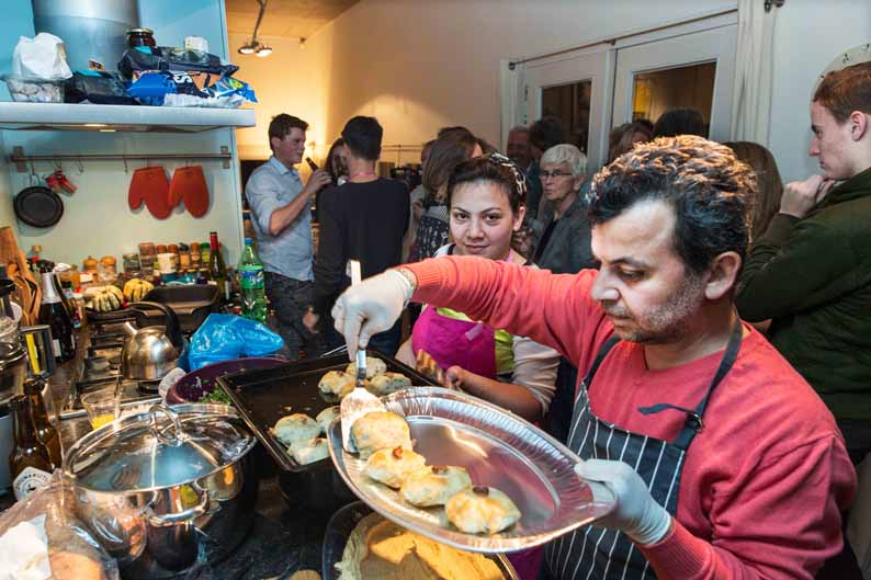 - Mohamad en Abeer verzorgen de catering op een feest (uit serie 'Syrische vluchtelingen'), 2016