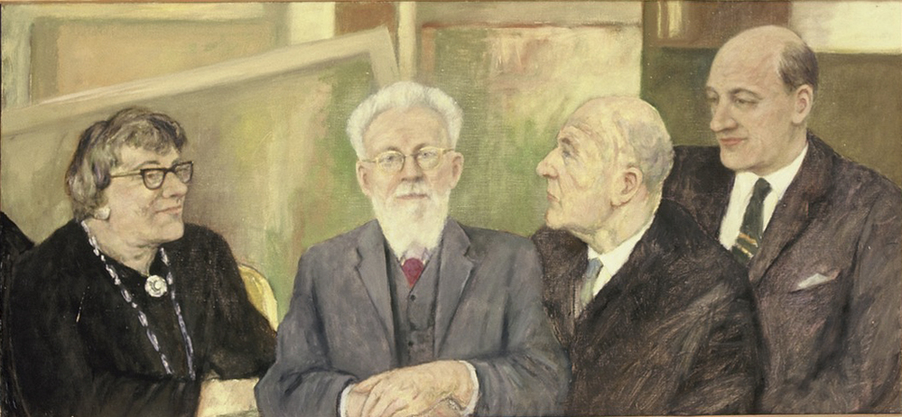 Trefwoorden schilderij, groepsportret, Beeldende Kunstenaars Regeling (BKR), Commissie Sociale Kunstopdrachten Gemeente Amsterdam BKR, Theo Swagemakers, Dolf Breetveld, Yvonne Kracht, C.J. Zeewiester, R.J.M. Hanlo, Wim Kersten, A. Kaan, Jan Hageman, Frieda Hunziker, Gerard Drost, P. Dijkema, A. Syrierschilderijencollectie Amsterdam Museum