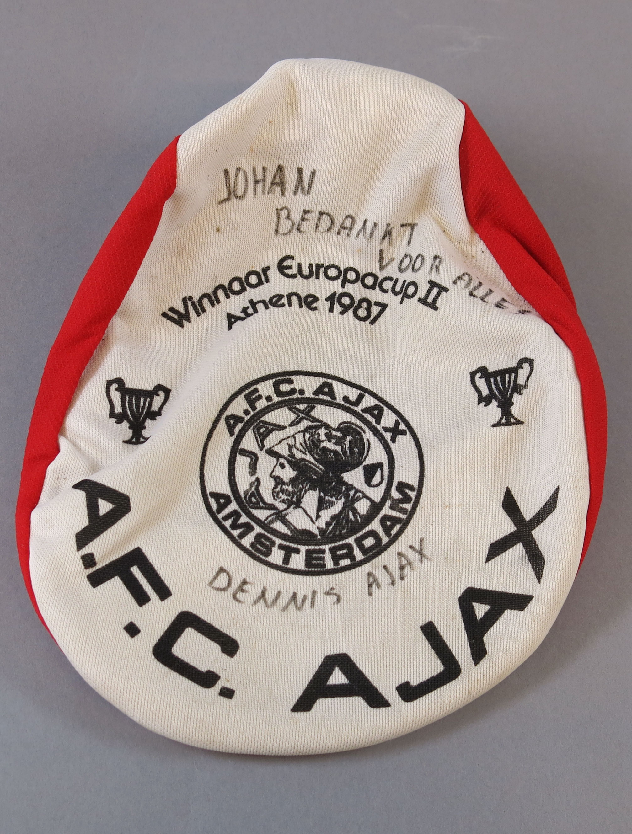 Ajax-pet, 'Winnaar Europacup II, Athene 1987' (achtergelaten door fan bij ouderlijk huis van Cruijjff in Betondorp na zijn overlijden op 24 maart 2016), 1987 - 2016