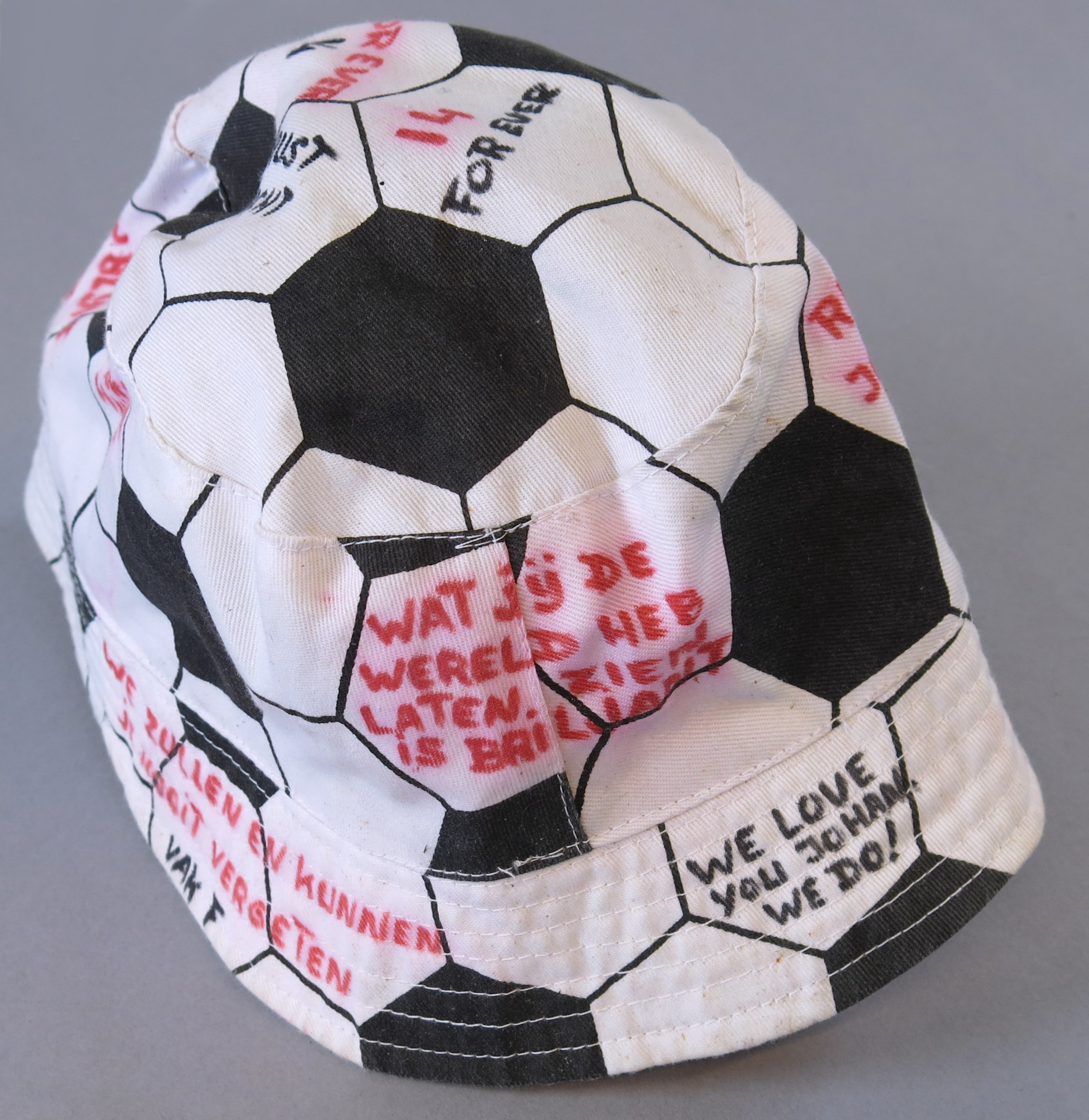 - Drie voetbalpetjes (achtergelaten door fan bij ouderlijk huis van Cruijjff in Betondorp na zijn overlijden op 24 maart 2016), 1980 - 2016